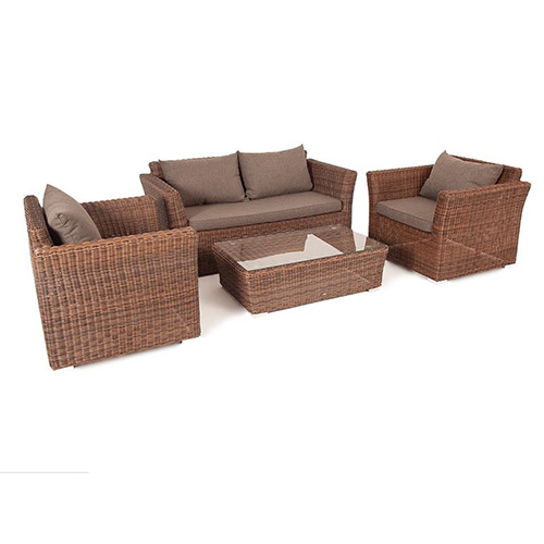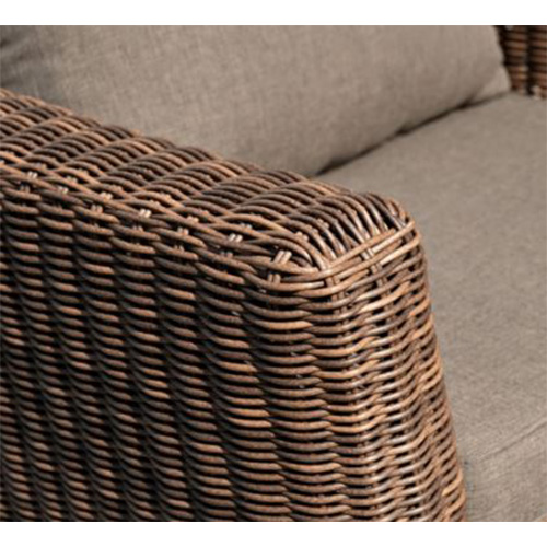 Уютный комплект для частной территории, где приятно проводить время в кругу близких и друзей. Мебель выполнена из прочного алюминиевого каркаса, вручную оплетённого круглым искусственным ротангом. Цвет комплекта — благородный коричневый.