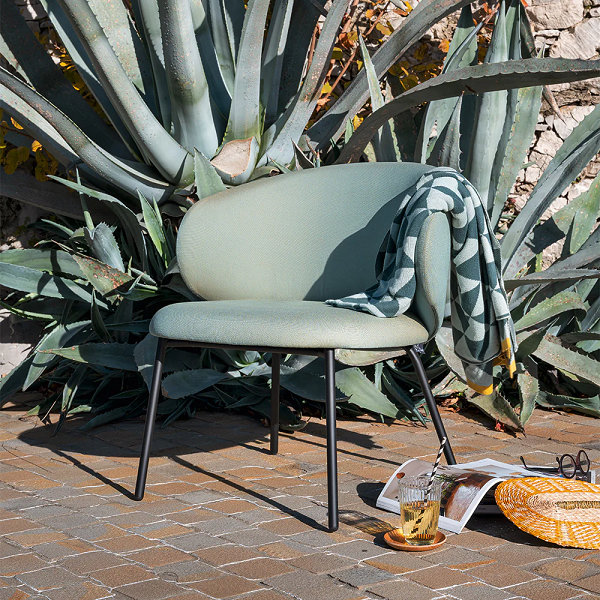Кресло Tuka оснащено металлическим каркасом, обработанным и покрытым лаком для использования на открытом воздухе. Сиденье и большая обтянутая спинка наполнены водоотталкивающим материалом. Покрытие из водоотталкивающей ткани Sunbrella® защищает от выцветания под воздействием ультрафиолетовых лучей, а также устойчиво к плесени и пятнам.